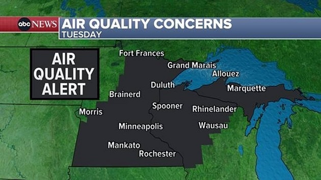 Rain on Tuesday should alleviate the poor air quality briefly, but there is a chance for additional heavy smoke later Tuesday afternoon, especially from Duluth to Minneapolis.