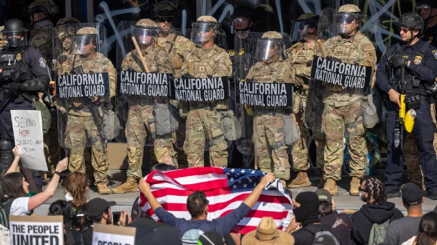 (LOS ANGELES) — There are currently 4,100 California National Guardsmen and 700 Marines in the greater Los Angeles area after President Donald Trump ordered them to protect federal buildings and federal law enforcement as protests opposed to ICE raids increased over the weekend.