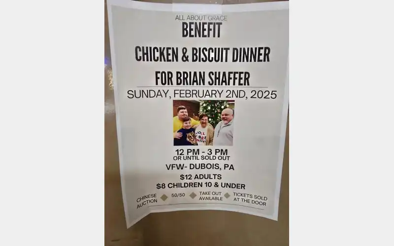 Sunday February 2nd, All About Grace will be hosting a benefit ate the VFW for a local young family. A chicken and Biscuit dinner, until sold out, a Chinese auction, and a 50/50.