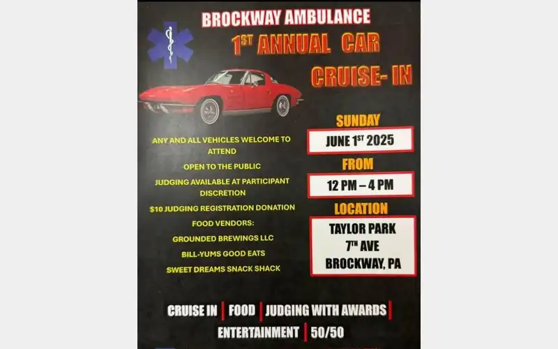 HomeEventsBrockway Ambulance Car Cruise In Brockway Ambulance Car Cruise In SHARE NOW Sun, Jun 1 from 12:00pm to 4:00pm Taylor ParkBrockway PA Map Add to My Calendar
