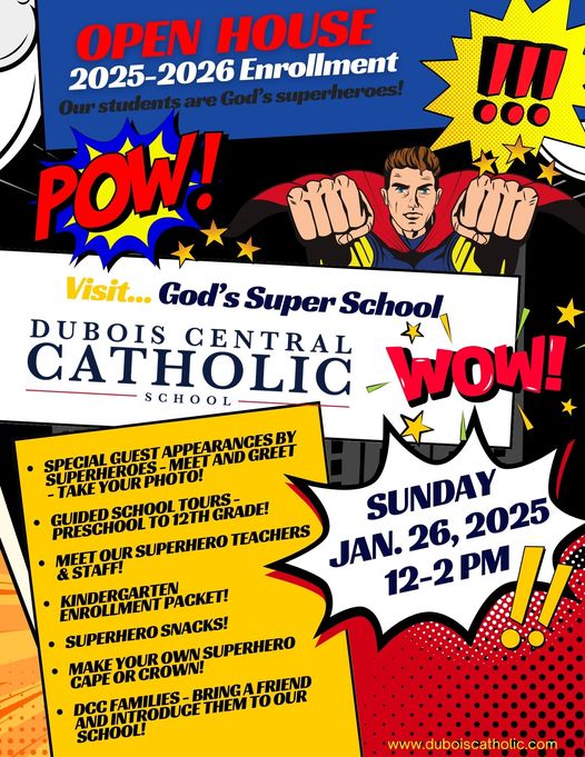 Mark your calendar: Sunday, January 26th, 2025 at DuBois Central Catholic School & Little Cardinals Preschool, 12-2 pm