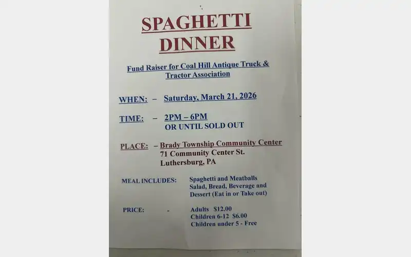 HomeEventsSpaghetti Dinner Spaghetti Dinner SHARE NOW Sat, Mar 21 from 8:00am to 8:00am Brady Township Community Center Add to My Calendar