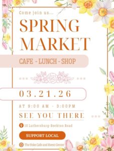 HomeEventsSpring Market Spring Market SHARE NOW Sat, Mar 21 from 9:00am to 3:00pm The Yoke Cafe10 Luthersburg-Rockton Road Map Add to My Calendar