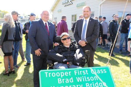 The bridge, which spans across Pentz Run on the DuBois/Sandy Township border was renamed after First Class Brad Wilson who was critically wounded by gunfire in 2013 when attempting to serve a search warrant in Jefferson County.