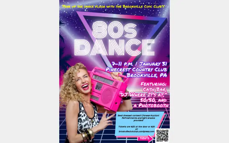 BROOKVILLE – Get your neon and leg warmers ready, as the Brookville Civic Club invites you to an 1980s themed dance.