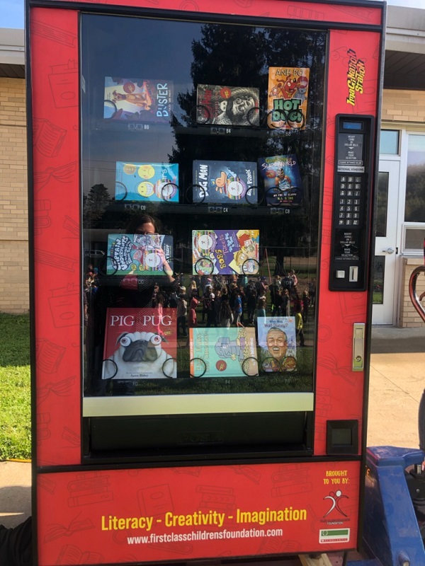 Reynoldsville, PA – Students were excited to see a new addition to CG Johnson Elementary… a book vending machine using “caught being good tokens”, courtesy of First Class Children’s Foundation!