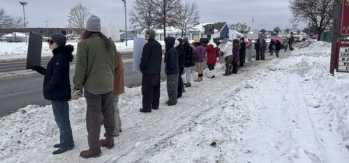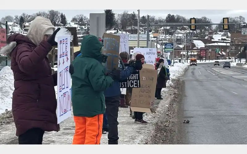 DUBOIS – Dozens of people braved the frigid temperatures Saturday afternoon, lining along Route 219 in DuBois to protest what they describe as extreme actions by the U.S. Immigration and Customs Enforcement.