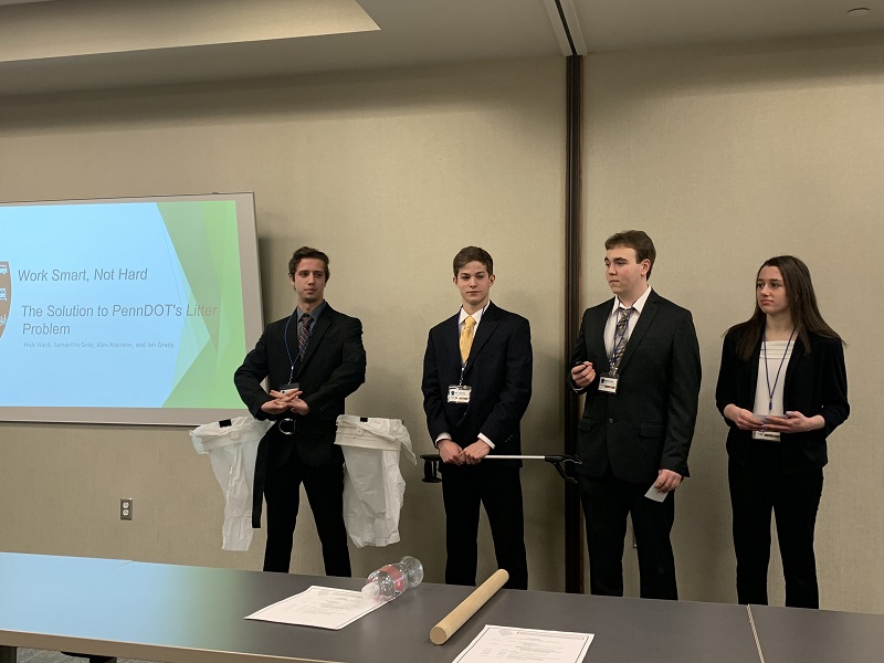 Since last fall, students have been working hard to solve this year’s challenge: Aside from laws, programs and educational campaigns, what cost-effective, innovative solution can be developed in the next five to 10 years to help PennDOT more efficiently, effectively and safely control litter along roadways?