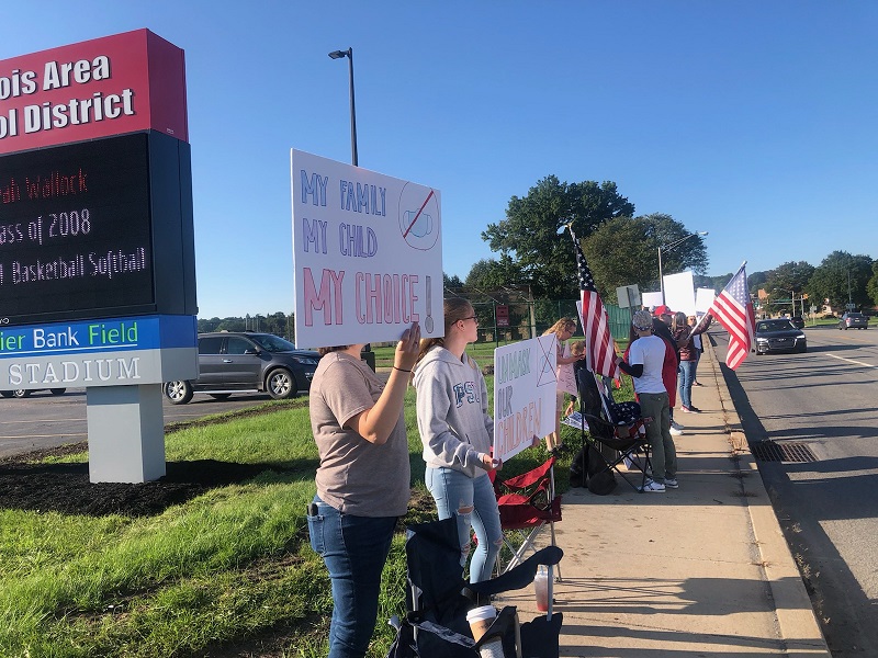 Harrisburg, PA – Some families are protesting today across the street from the DuBois Middle School on Liberty Boulevard, as kids are back to wearing masks in school again.